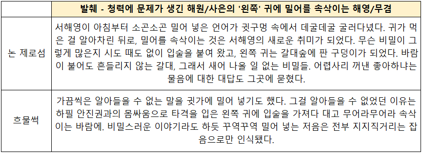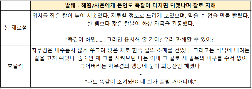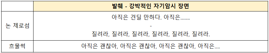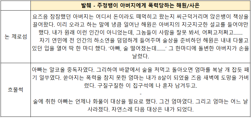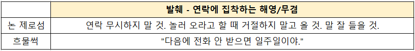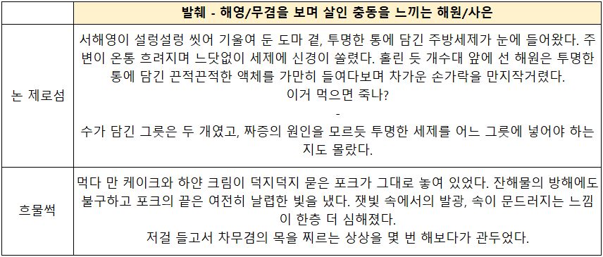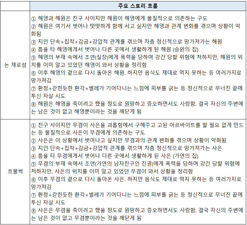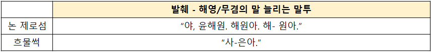 3. 『논 제로섬』과 『흐물썩』의 유사점 - 윤해원(수)과 김사은(여주)