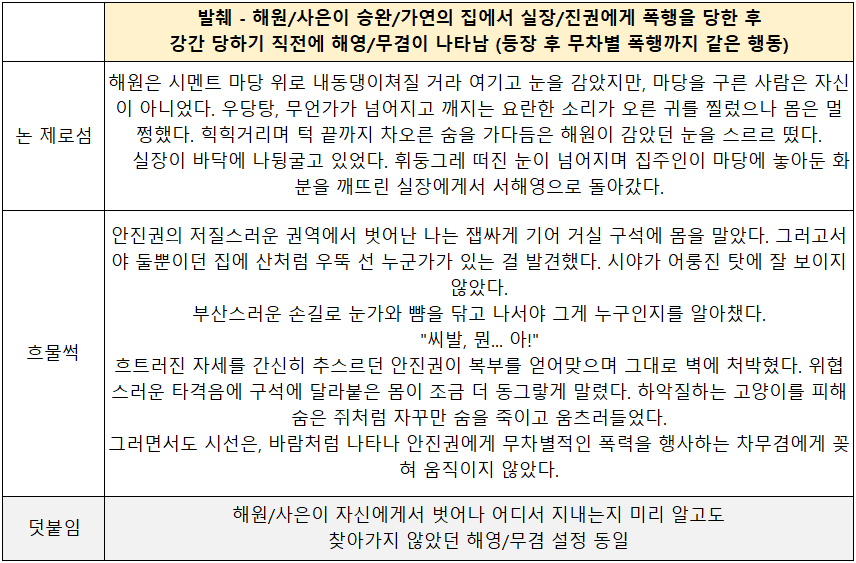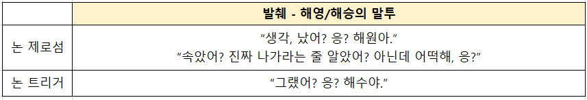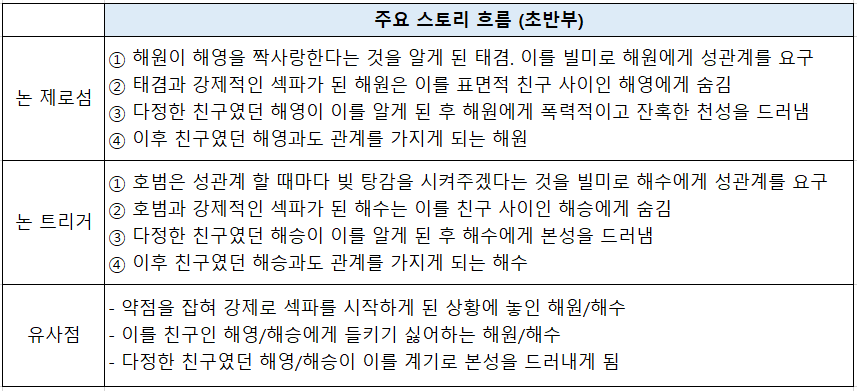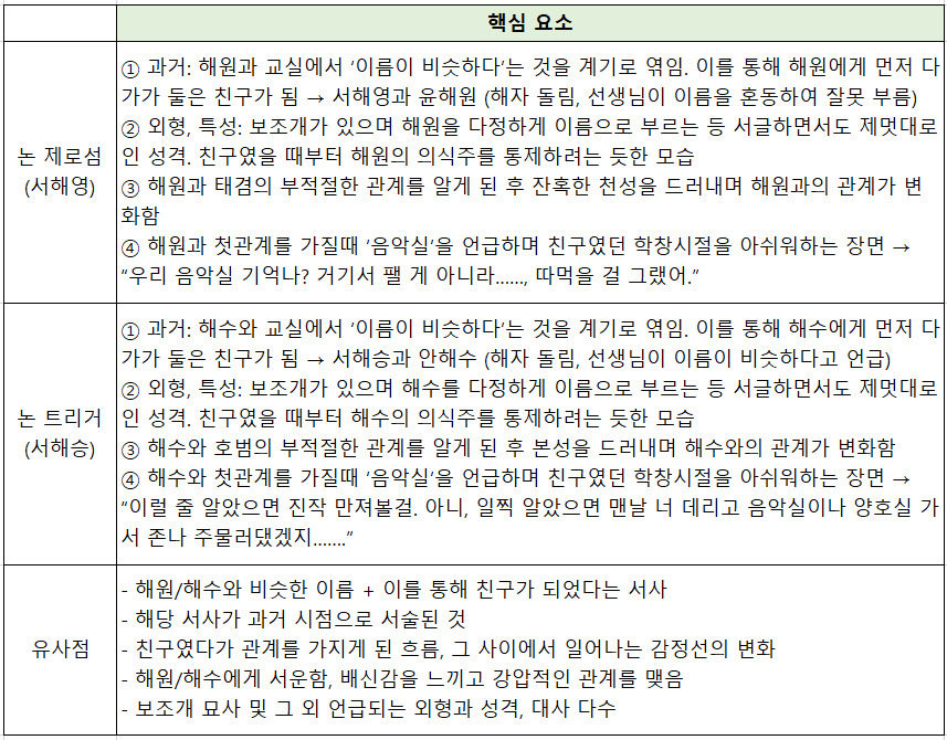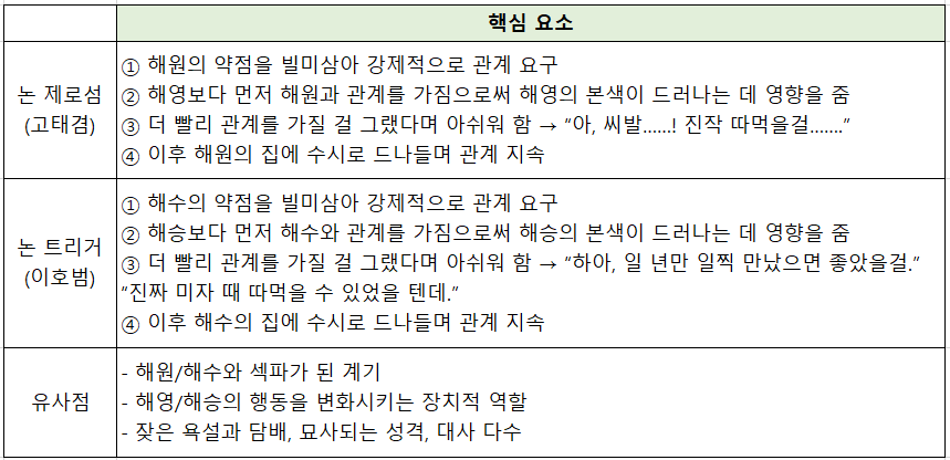 4. 『논 제로섬』과 『논 트리거』의 유사점 - 윤해원(수)과 안해수(여주)